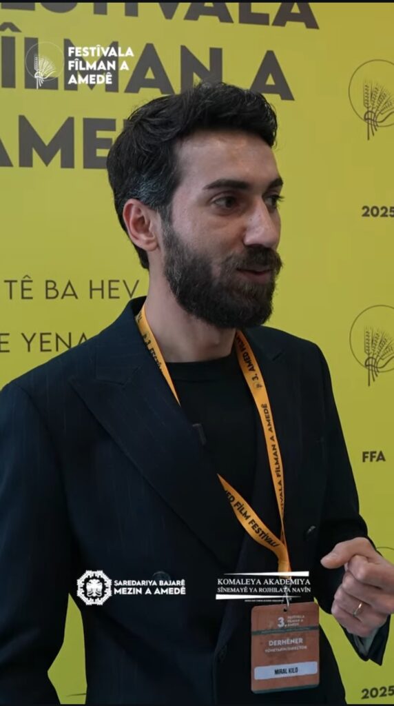 Piştre, ez derketim fuayeyê. Min li ser lingan du mamosteyên xwe yên din Ardîn Dîren û Îbrahîm dîtin. Piştî suhbeteke kurt, silava dostan, naskirina çend derhêneran û halpirsîna hevaldersan me çend wêne kişandin. Min ji Başûr, Bakur, Rojhilat û Rojava derhêner dîtin û nas kirin. Ambîyansek gelekî xweş bû. Rexmê sînor û dûriyê her yek bi germahiyek jidil, şiûra sînemaaya neteweyî hatibûn… A ku li pişt sînoran me tîne ba hev helbet hêma, helbest û çîrok in. A ku çîrokên me rave dike, sînemaya me çêdike û stranên me dibêje, heman hest û heman helwest e. Xulase, şiyaneke baş û xurt di nava sînemaya kurdî de derketiye. Û ez bawer im Amedê bibe sûr û keleha sînemaya kurdî û navnîşana dîdariya sînemaya cîhanê. Kî dizane belkî rojek bibe ‘Cannes a Kurdistanê’…